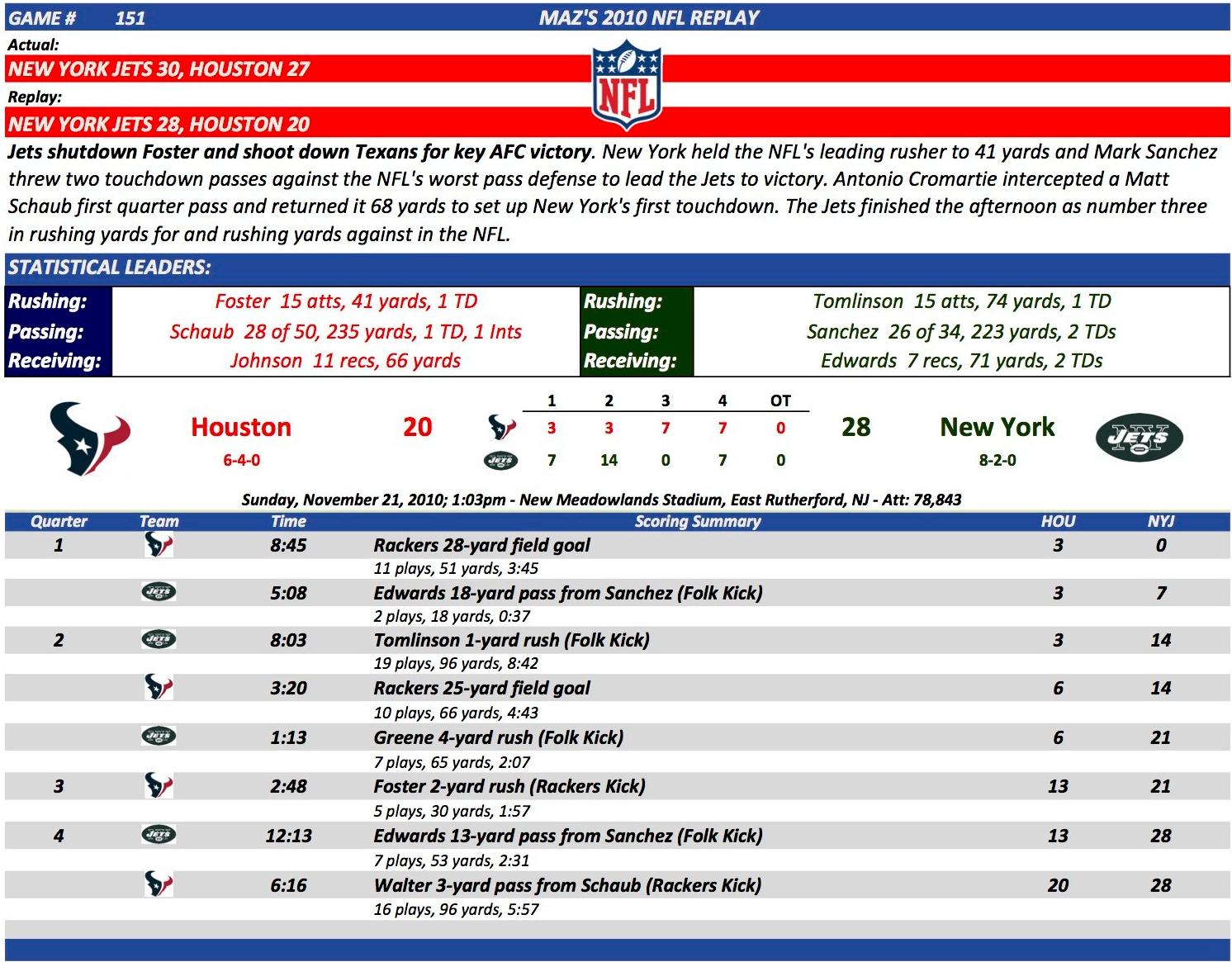 Game 151 Hou at NYJ
